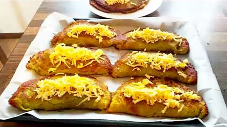 Перекладаю готові деруни на деко застелене пергаментом, зверху посипаю тертим сиром. Випікаю у розігрітій духовці до 180 градусів 15 хвилин.