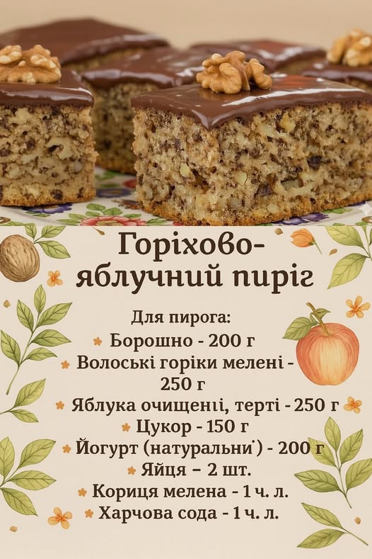 Горіхово-яблучний пиріг з шоколадною помадкою
