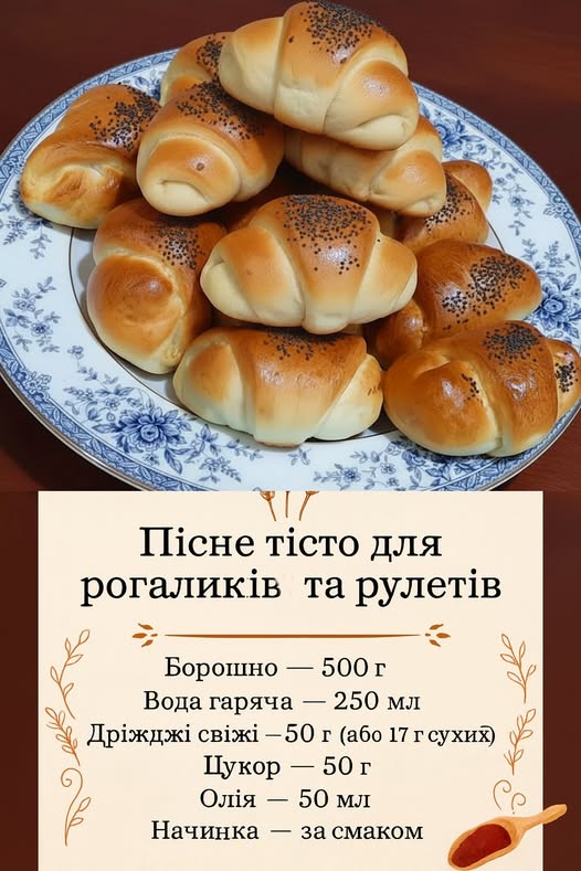 Готові рогалики викласти на деко, дати постояти 10–15 хв.