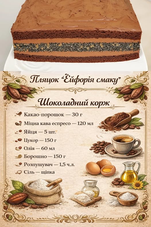 Пляцок витримати в холодильнику 8–12 годин для стабілізації та насичення смаку.