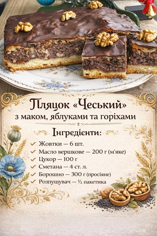 Пляцок «Чеський» з маком, яблуками та горіхами