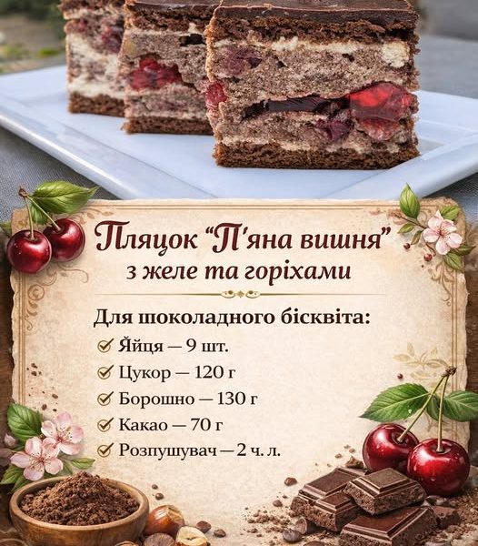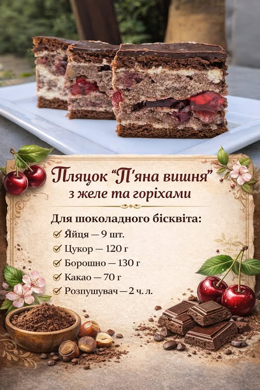 🍒 Пляцок «П’яна вишня» з желе та горіхами виходить насиченим, ароматним і дуже святковим.