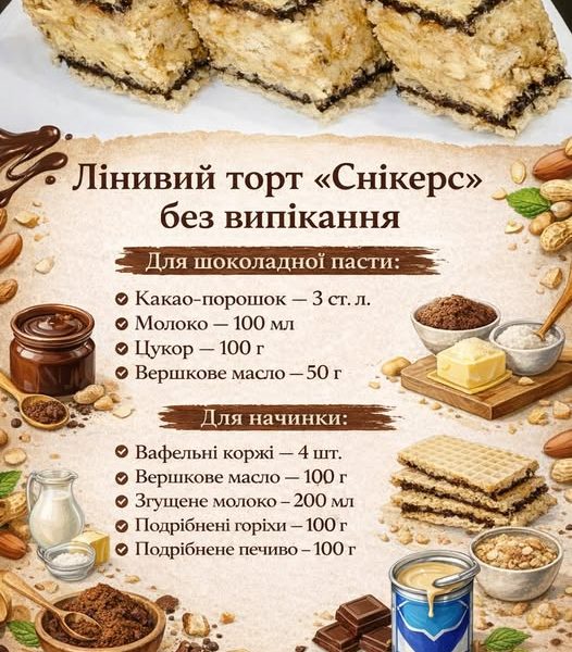 Форма: 20×25 см Інгредієнти Для шоколадних коржів: Борошно пшеничне — 2 склянки Кукурудзяний або картопляний крохмаль — 2 ст. л. Какао-порошок — 3 ст. л. […]