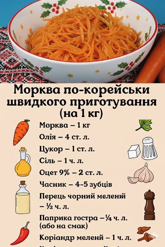 Морква по-корейськи швидкого приготування (на 1 кг)