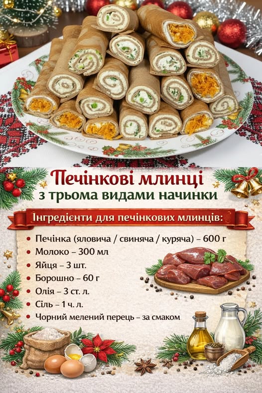 Печінкові млинці з трьома видами начинки