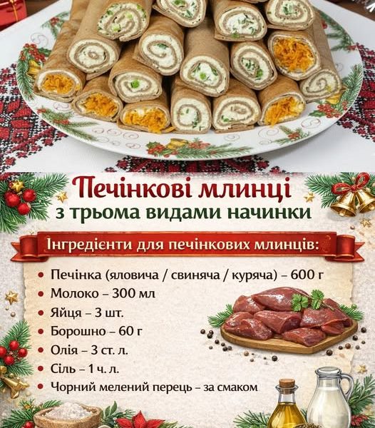 Печінкові млинці з трьома видами начинки