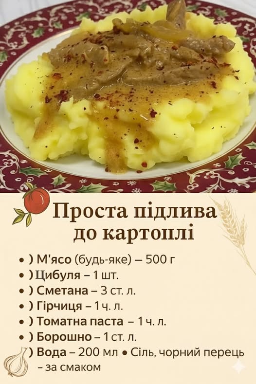 Підлива ідеально смакує з картопляним пюре, гречкою або макаронами