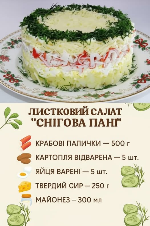 Для святкової подачі розсипте трохи кропу навколо салату — створюється ефект «хвої на снігу» ![]()
