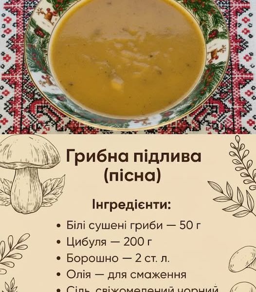 Грибна підлива з сушених грибів (пісна)