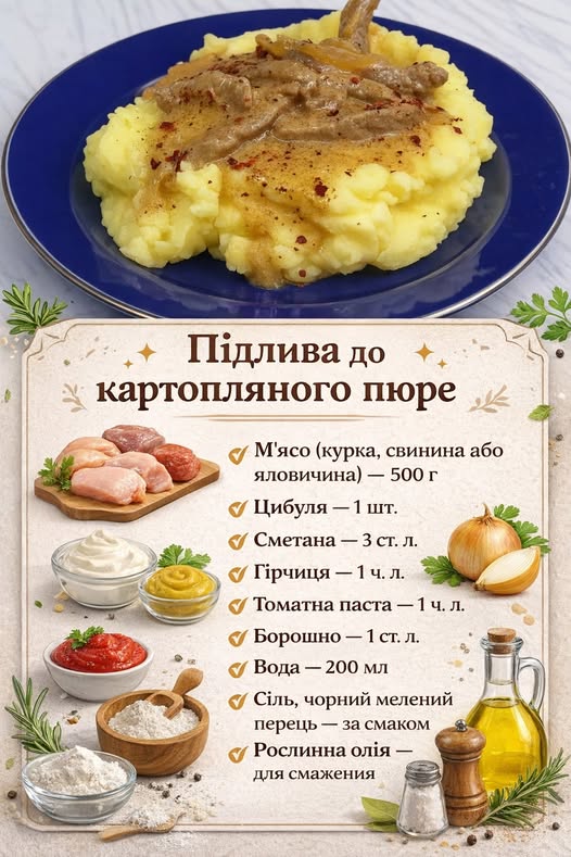 Така підлива чудово поєднується з картопляним пюре та іншими гарнірами.