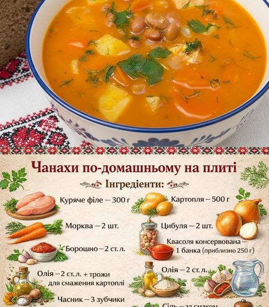 Ця страва нагадує класичні чанахи, але готується значно швидше й простіше — у звичайній каструлі. Виходить наваристо, ситно та дуже ароматно.