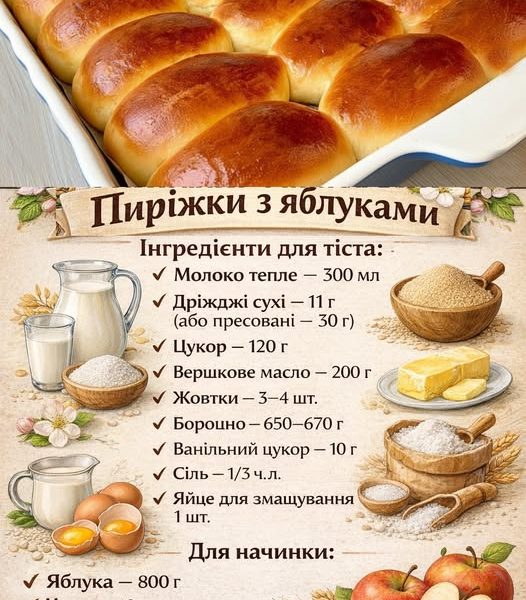 Пиріжки з яблуками – м’які та ароматні
