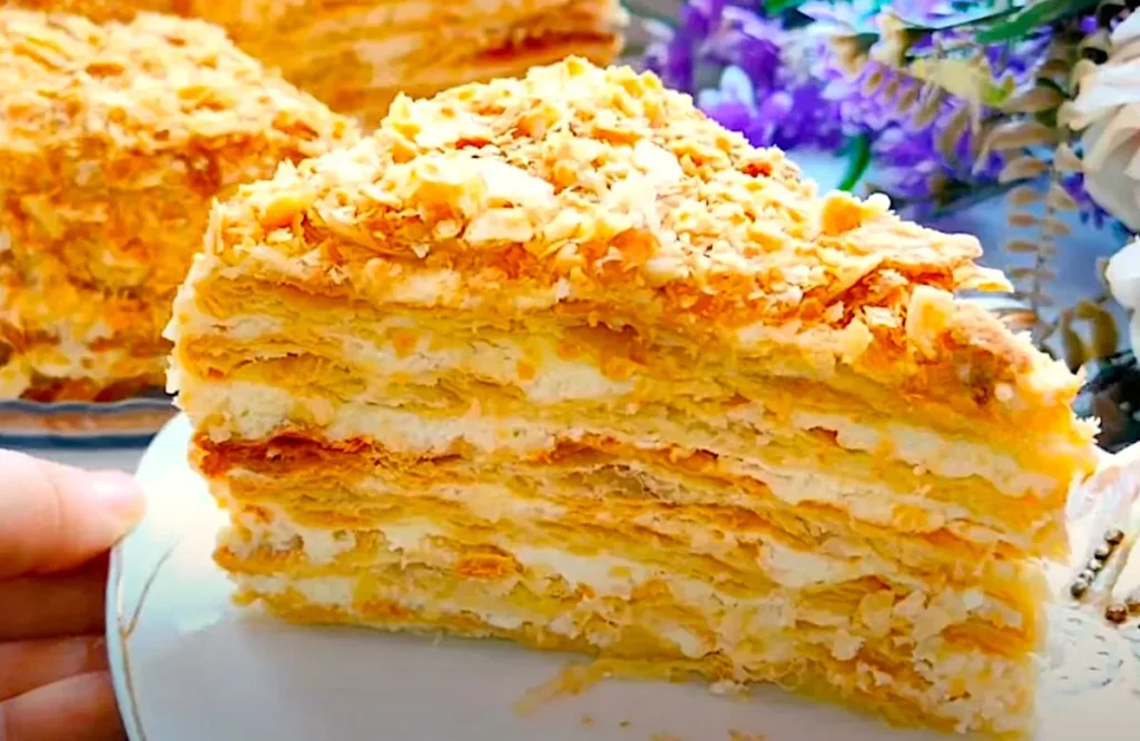 Торт «Наполеон» — смак дитинства. Його ніжні, хрусткі коржі, просочені ароматним заварним кремом, нагадують про родинні свята, мамину турботу та домашній затишок. Цей рецепт збережено ще з 1970-х років, і в ньому — справжній смак класики.