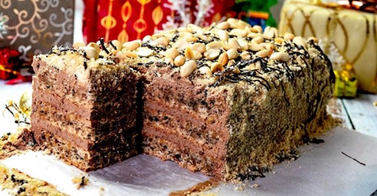 Білкові коржі з горіхами, перемазані заварним кремом – це справжній королівський десерт, який ви можете прикрасити за своїм смаком.