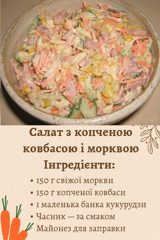 Салат з копченою ковбасою і морквою