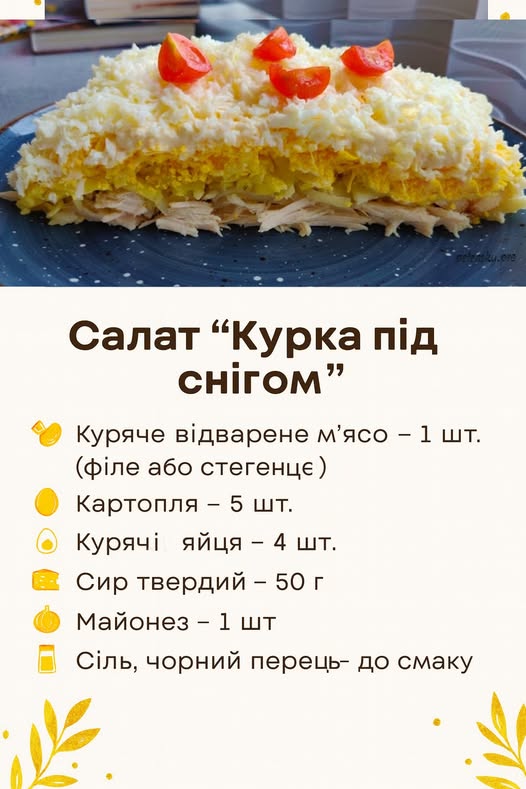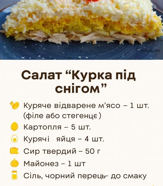 Салат “Курка під снігом” — ніжний, святковий та дуже простий