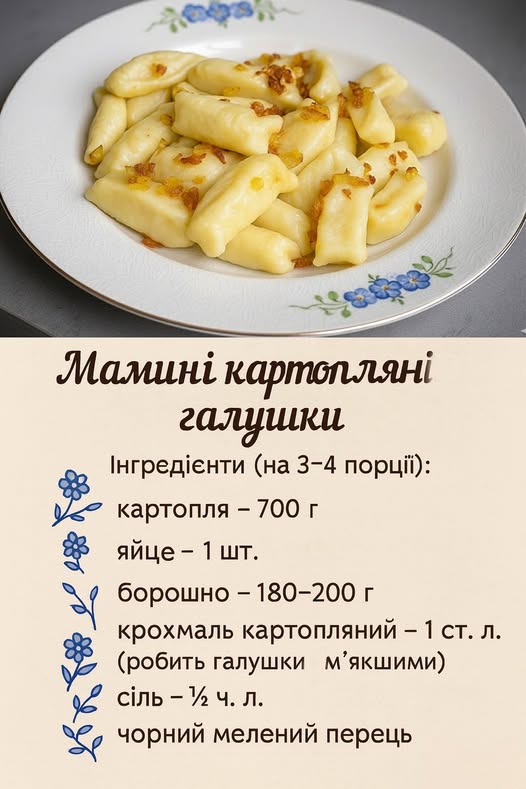 крохмаль картопляний — 1 ст. л. (робить галушки м’якшими)