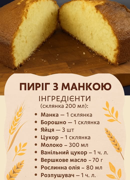 Форма 22–24 см (кругла) або 20×25 см (прямокутна).