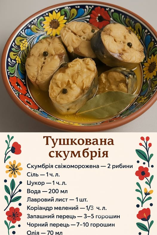 Готуйте 2,5–3 години — за цей час скумбрія стане надзвичайно ніжною, а дрібні кісточки розм’якшаться.