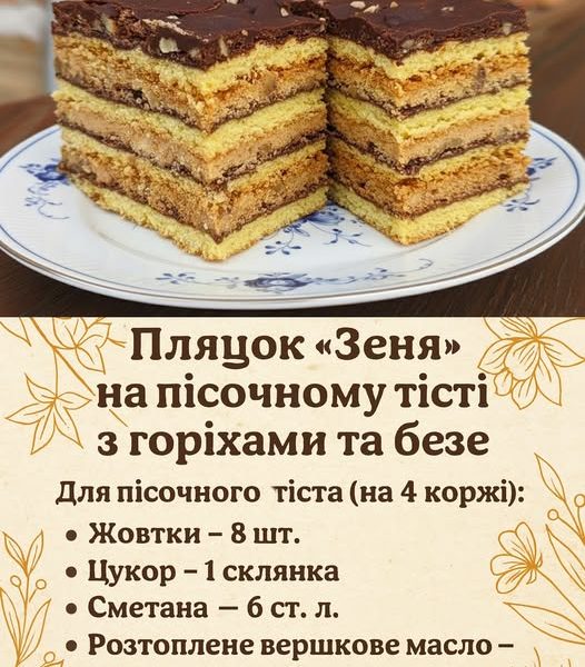 Інгредієнти Для пісочного тіста (на 4 коржі): Жовтки – 8 шт. Цукор – 1 склянка (зменшено для кращого балансу смаку) Сметана – 6 ст. л. […]