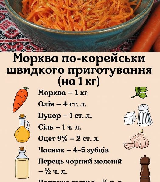 Готується дуже швидко й завжди виходить ідеальною. Інгредієнти на 1 кг моркви: Морква — 1 кг Олія рослинна — 4 ст. л. Цукор — 1 […]