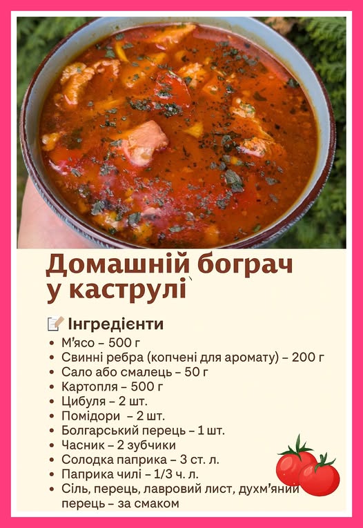 Домашній бограч у каструлі — це ситний, пряний і неймовірно ароматний суп-гуляш, який легко приготувати навіть без казана. Якщо не маєте казана — у звичайній каструлі виходить не менш смачно!