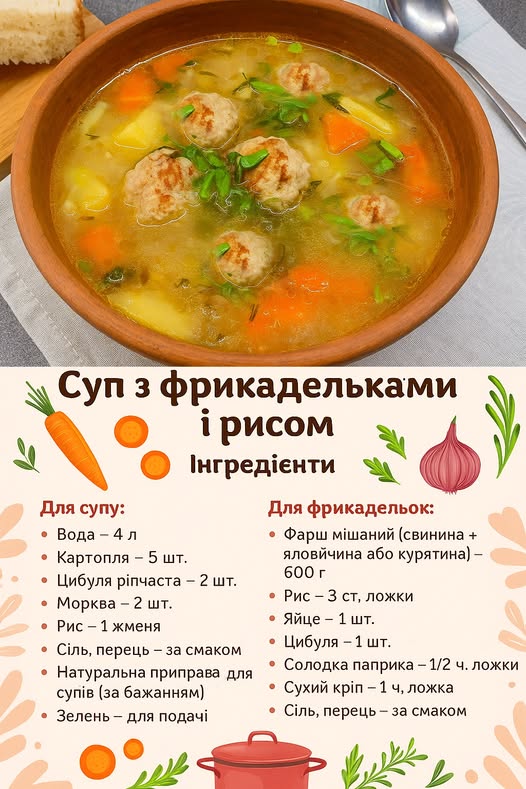 Такий суп з фрикадельками — ароматний, ситний і домашній, саме те, що потрібно для затишного сімейного обіду.