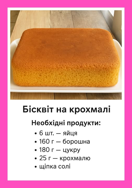 Як приготувати класичний бісквіт з крохмалем