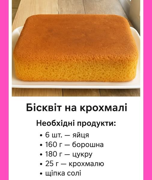 Як приготувати класичний бісквіт з крохмалем