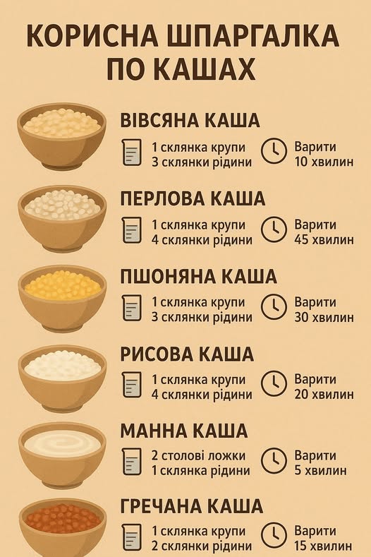 КОРИСНА ШПАРГАЛКА ПО КАШАХ