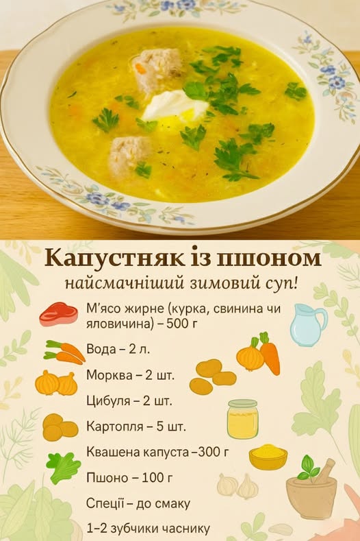 Капустняк із пшоном — густий, ароматний і найсмачніший зимовий суп