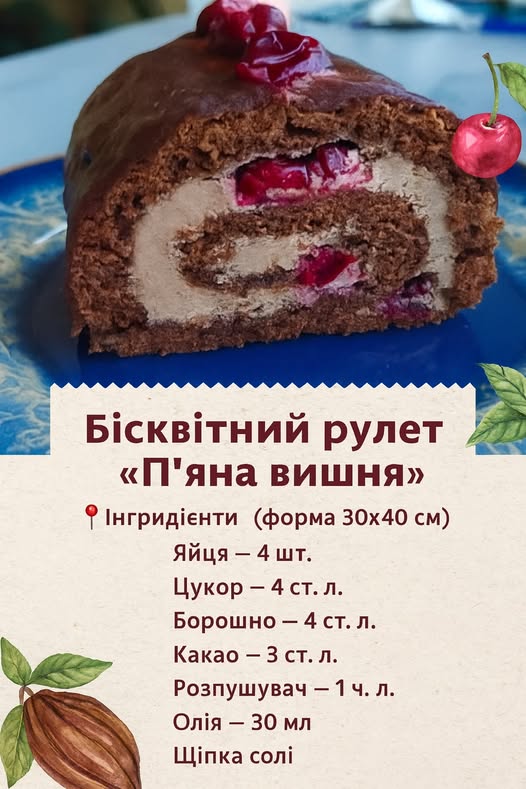Рулет виходить ніжний, ароматний та дуже ефектний у розрізі. Ідеально підходить на свята та для гостей.
