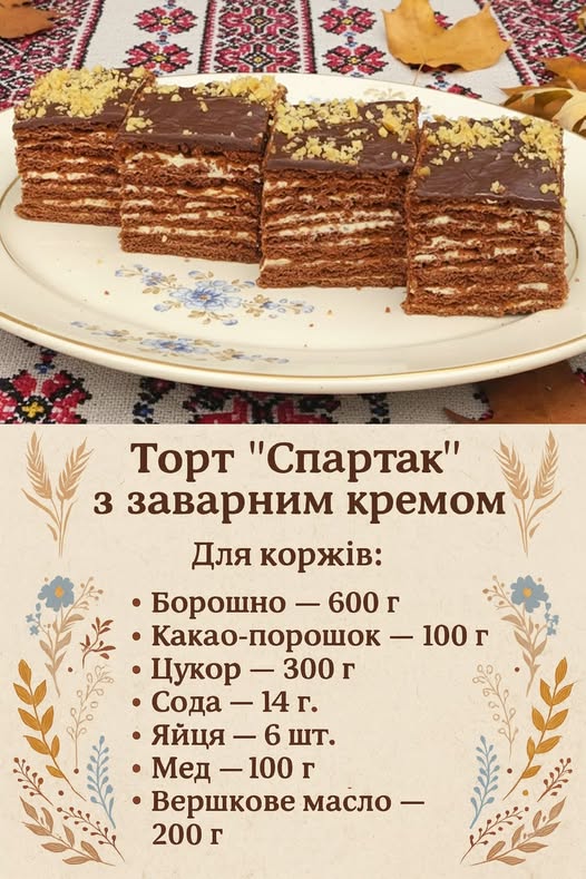 Тонкі медово-шоколадні коржі та ніжний ванільний крем — перевірена класика, яка завжди вдається ![]()