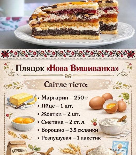 Неймовірно смачний, святковий і дуже ефектний пляцок, у якому поєднуються світле та шоколадне тісто, маковий корж, арахіс і два види повидла. Справжня «вишиванка» у світі […]