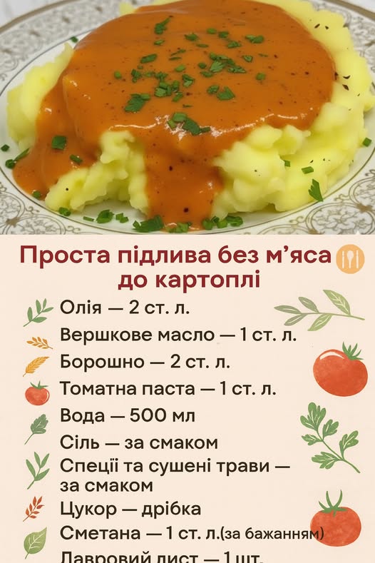 Підлива ідеально підходить до картопляного пюре, гречки, рису, макаронів, котлет або тефтелей.