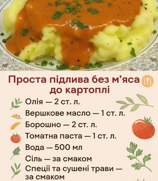 Підлива ідеально підходить до картопляного пюре, гречки, рису, макаронів, котлет або тефтелей.