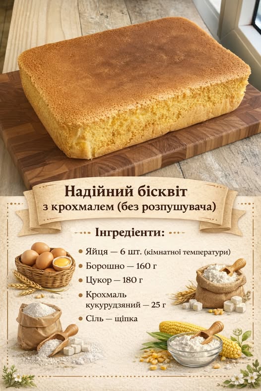 Надійний бісквіт з крохмалем (без розпушувача)