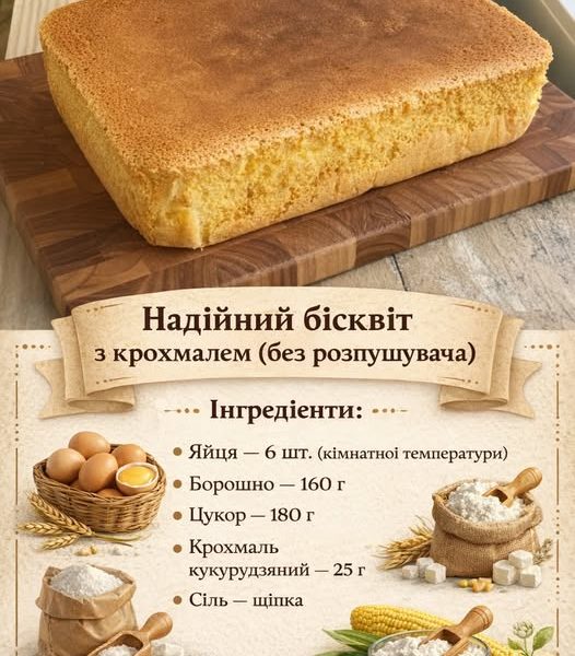 Надійний бісквіт з крохмалем (без розпушувача)