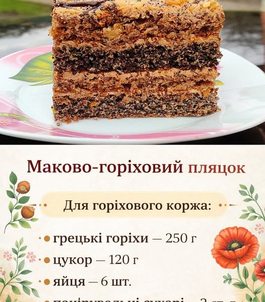 Цей пляцок — класика святкової випічки. Ніжні макові коржі, ароматні горіхові шари та масляний крем із вареним згущеним молоком створюють ідеальну гармонію смаку. Інгредієнти Для […]