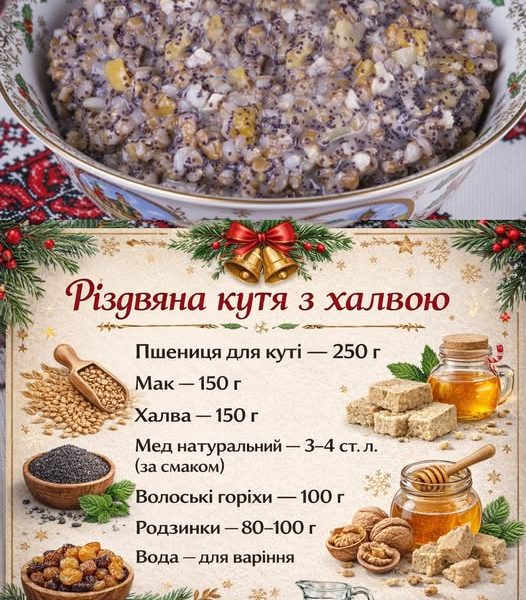Інгредієнти: Пшениця для куті — 250 г Мак — 150 г Халва соняшникова або кунжутна — 150–200 г Мед натуральний — 3–4 ст. л. (за […]