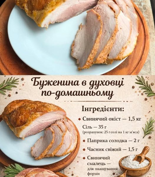 Духовку розігріти до 170 °C і запікати буженину 40 хвилин.