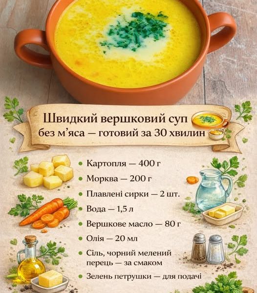 Легкий, ароматний і дуже ніжний суп із плавленими сирками. Готується з доступних продуктів, не потребує м’яса й чудово підходить для швидкого обіду або вечері. Інгредієнти: […]