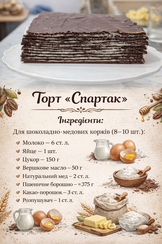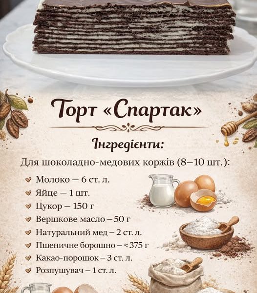 Торт «Спартак» — класика шоколадно-медових коржів з ніжним кремом