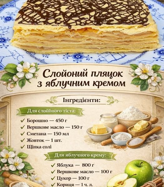 Слойоний пляцок з яблучним кремом Ніжний, ароматний та по-справжньому домашній пляцок із тонких слойоних коржів та густого яблучного крему з корицею. Ідеально смакує після нічного […]