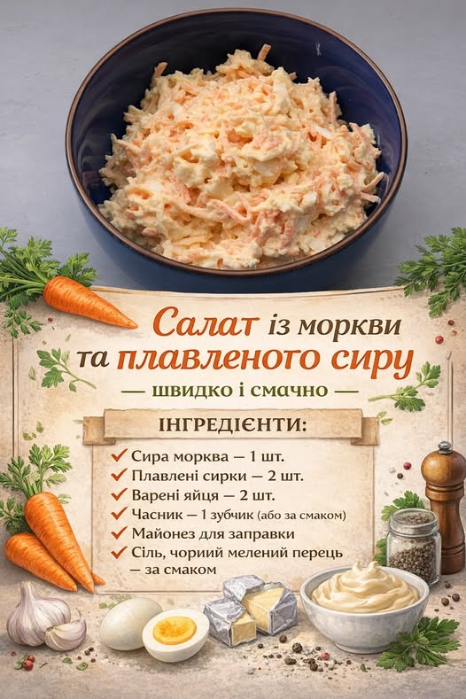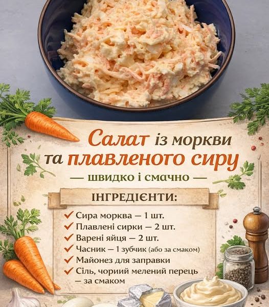 Салат із моркви та плавленого сиру — швидко і смачно