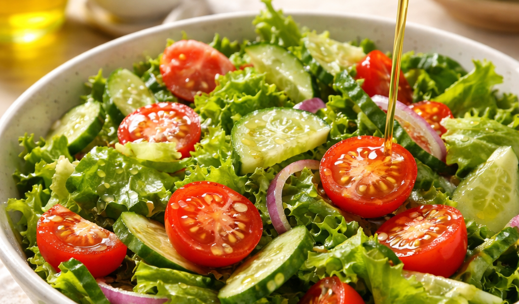 Поклади все в миску, додай оливкову олію, посоли, поперчи.